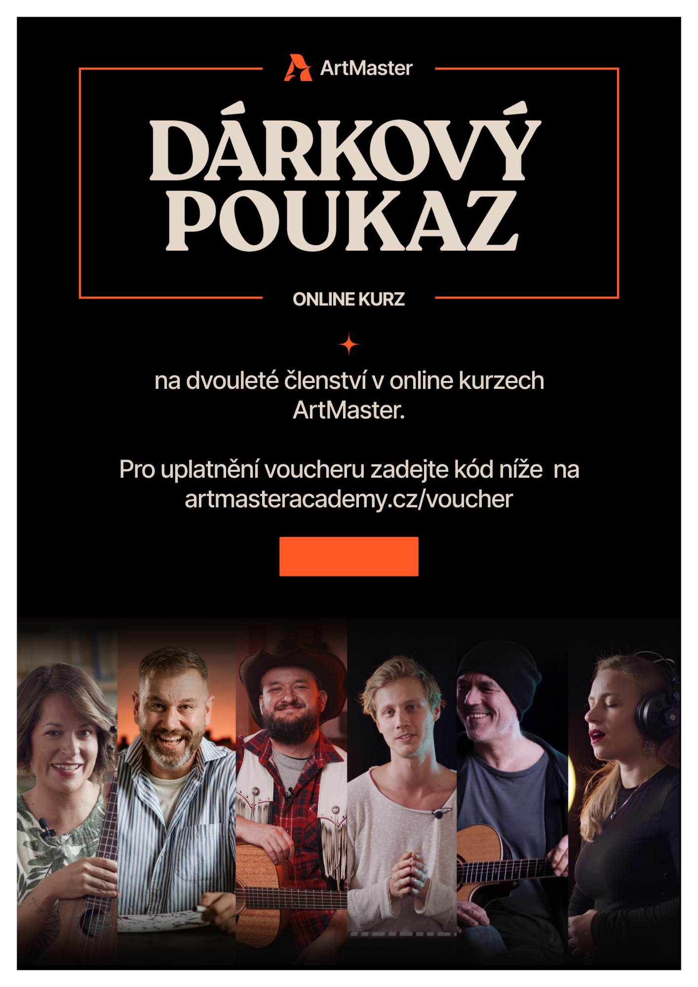 Zde si stáhnete dárkový poukaz. Do volného oranžového pole dopište kód Voucheru, který Vám přišel do mailu.